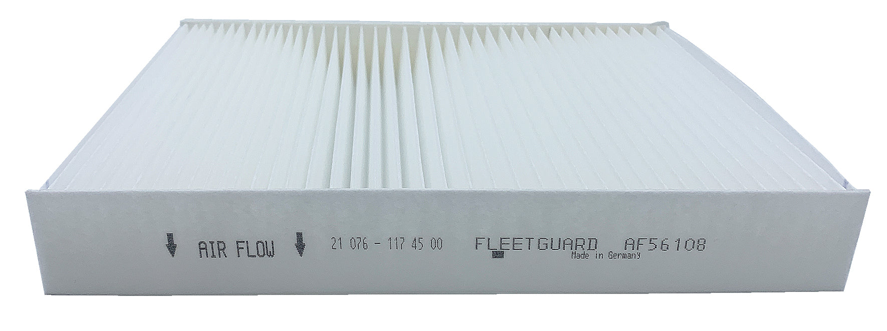 Fleetguard® AF56108 panel cabin air filter provides clean air in the cab which means a clean work environment. Breathing cleaner air can lead to longer and more productive working hours.