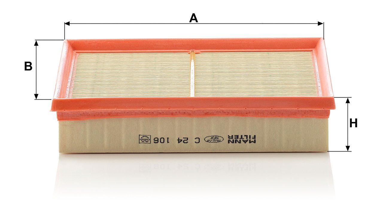 High-quality MANN-FILTER air filters for clean air intake and optimum protection for your engine, mass air flow sensor & other sensitive components / They meet requirements of modern engine technology. Highest dirt holding capacity and dirt separation efficiency, low flow resistance and high pleat stability ensure functional reliability during the entire service interval.