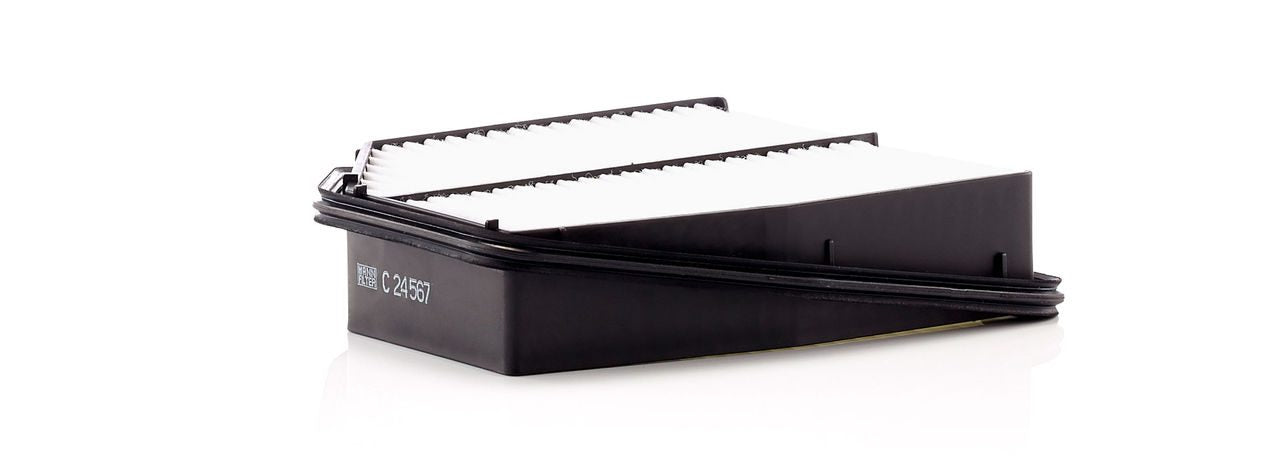 High-quality MANN-FILTER air filters for clean air intake and optimum protection for your engine, mass air flow sensor & other sensitive components / They meet requirements of modern engine technology. Highest dirt holding capacity and dirt separation efficiency, low flow resistance and high pleat stability ensure functional reliability during the entire service interval.
