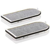 High-quality MANN-FILTER cabin filters with active carbon - nearly 100% protection from particles like pollen, diesel soot & tyre abrasion / Additional protection from harmful gases & unpleasant odour. The trated highly-effective activated carbon gives protection against harmful gases such as ozone, nitrogen oxide or sulphur dioxide and eliminates unpleasant odours during the entire service interval.
