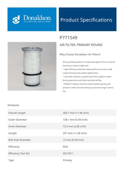 Style Air Filter, Primary Round