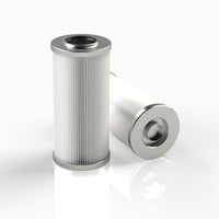 The efficiency of the element is shown using the Micron (µ) and Beta (β) ratings. The micron rating indicates the size of the particle being filtered and the beta rating the efficiency, calculated as 1/β.