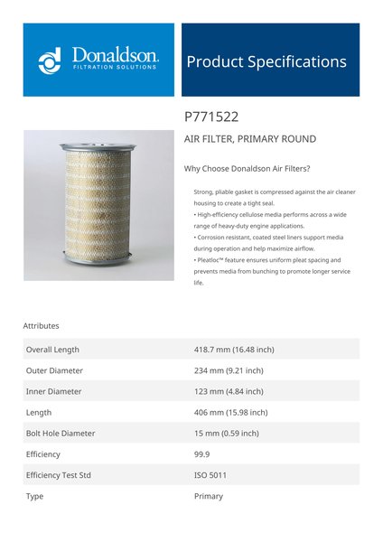 | Style | Air Filter, Primary Round |